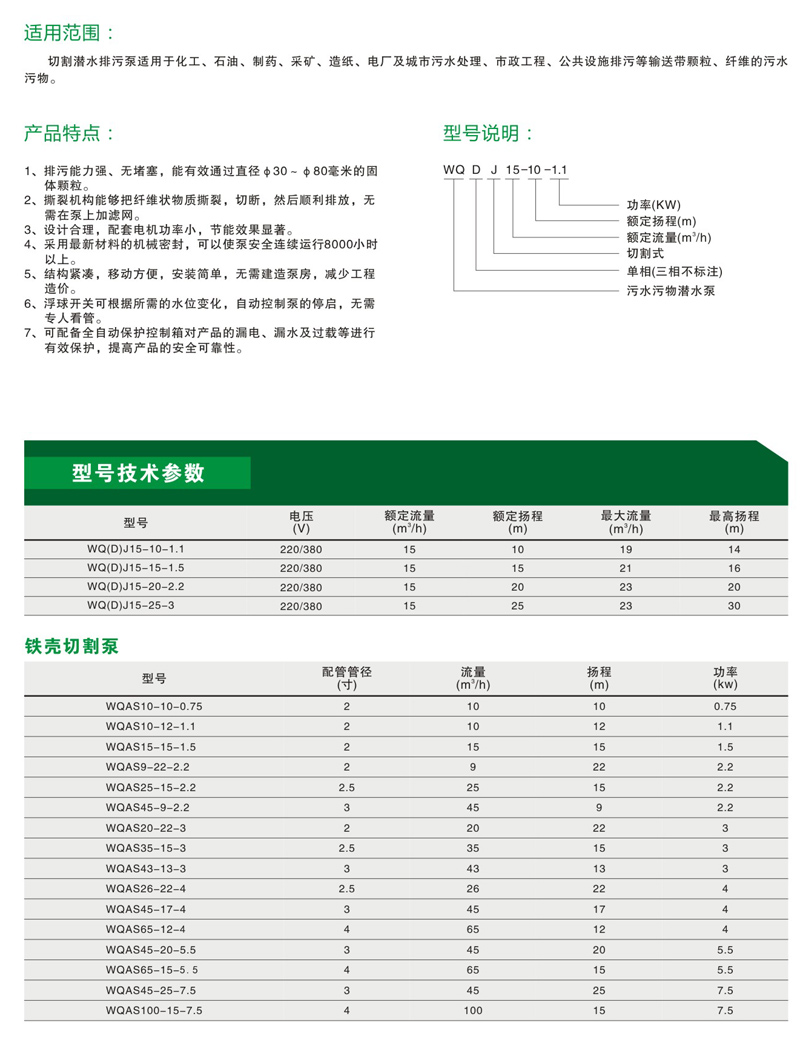 产品名称:WQ(D) K切割式污水泵