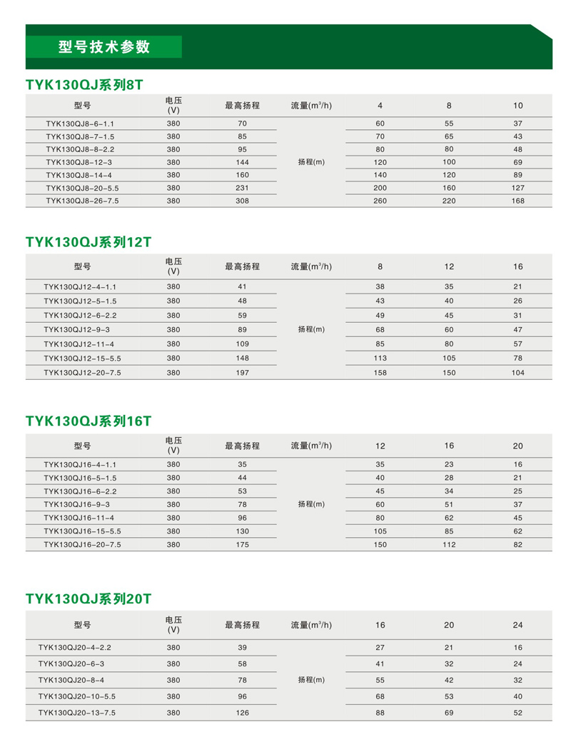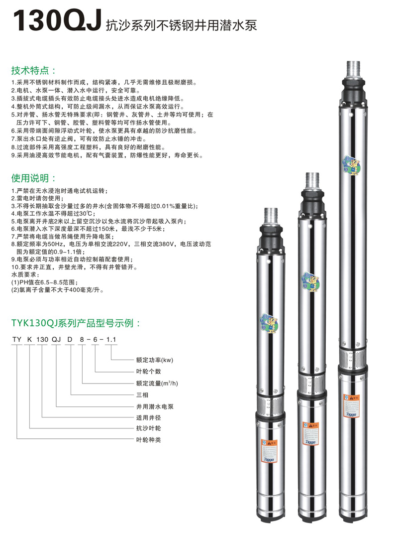产品名称:130QJD 抗沙系列不锈钢井用潜水泵
