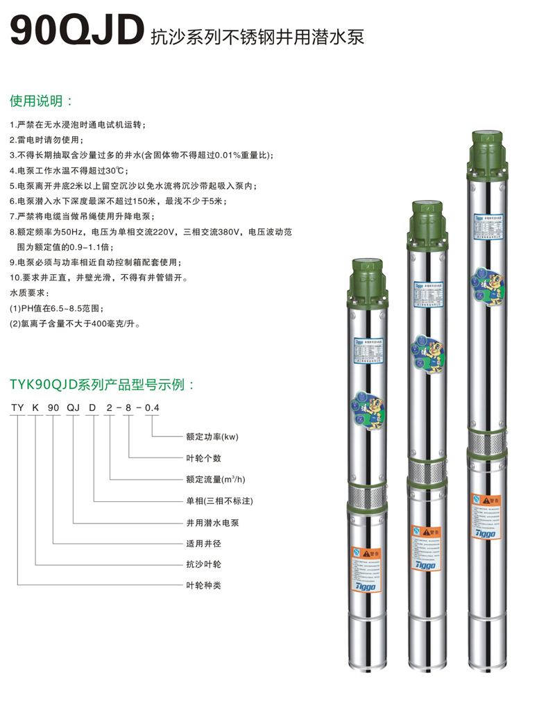 产品名称:900QJD 抗沙系列不锈钢井用潜水泵